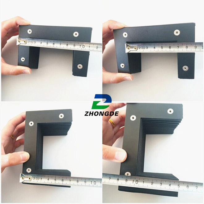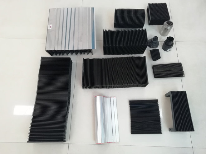 風(fēng)琴式防護(hù)罩用尼龍革、塑料織物或合成橡膠折疊、縫制或熱壓而成,內(nèi)有PVC板材支撐,可耐熱、耐油、耐冷卻液.