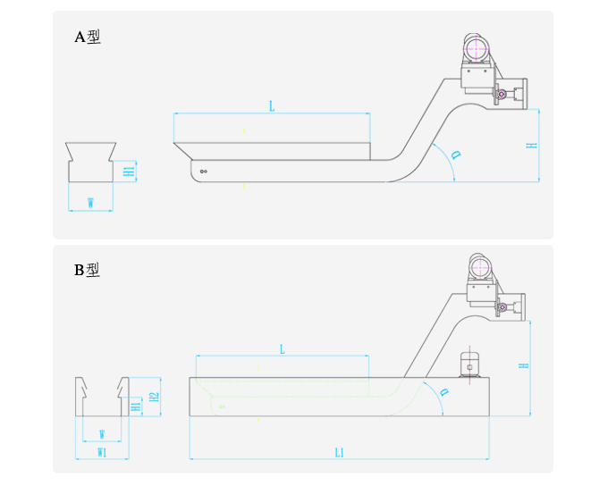 ZDGB系列刮板排屑裝置由殼體、減速機、驅(qū)動鏈條、傳動鏈條及刮板等部分組成。該裝置是利用特制的滾輪鏈條傳動,用刮屑板將切屑沿排屑器底部刮送到指定位置。該裝置可提供充足的選用范圍,刮屑板的高度、分布間距可隨機設(shè)計;通過輸送速度、有效輸送寬度的變化組合,可以調(diào)整控制機器的實際輸送量。