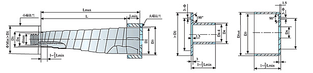 D1-保護套小端內(nèi)徑=dmaz + 1O 毫米 D2-保護套大端內(nèi)徑 D3-大端法蘭內(nèi)徑=D2 + 6 ~8 毫米