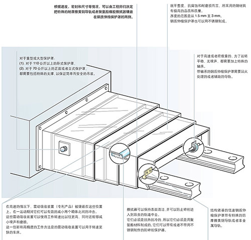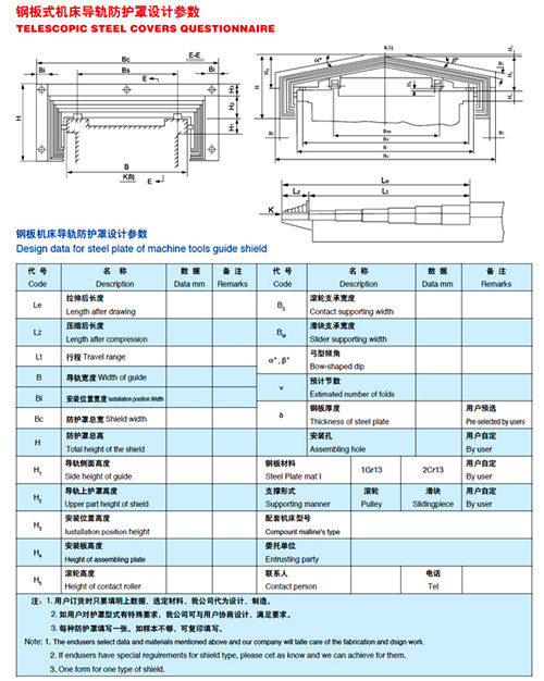 在世界上有許多的公司生產(chǎn)或銷售鋼質(zhì)伸縮保護外罩就體積和質(zhì)量而言我們公司已經(jīng)達到了生產(chǎn)的水平由于我們對機械設備方面進行巨大投資和人員培訓以及具有離度稱職的工程師力量.使我們完全可以應對機床研制發(fā)展中的最新的挑戰(zhàn):高速線性電機的使用和軸向速度的增加。