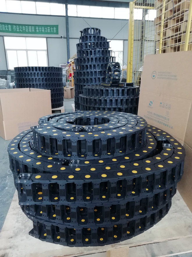 注:1、“/”表示暫無此類產(chǎn)品。 2、如果您要的規(guī)格不在此表內(nèi),中德公司也可按客戶要求設(shè)計(jì)生產(chǎn)各種規(guī)格拖鏈。 |