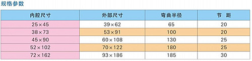 此型采用不銹鋼優(yōu)質(zhì)鋼及工程塑料材料制成,適用于短的移動行程和較低的往返速度,外形極為美觀。全封閉型的外亮,能完美地保護電線、電纜、軟管、氣管。以最小的外型尺寸得到最大的內(nèi)腔截面,噪音低。聯(lián)接器有四種不同的型式。